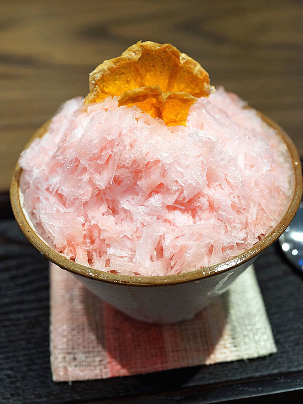 冷たいはずが、食べてるうちにお腹の中がポカッとあったかになってくるような不思議なおいしさ。空気をタップリ吸い込んで、フックラとしたサラサラ氷の軽い溶け具合も見事なモノで、かなりおいしい。オキニイリ。