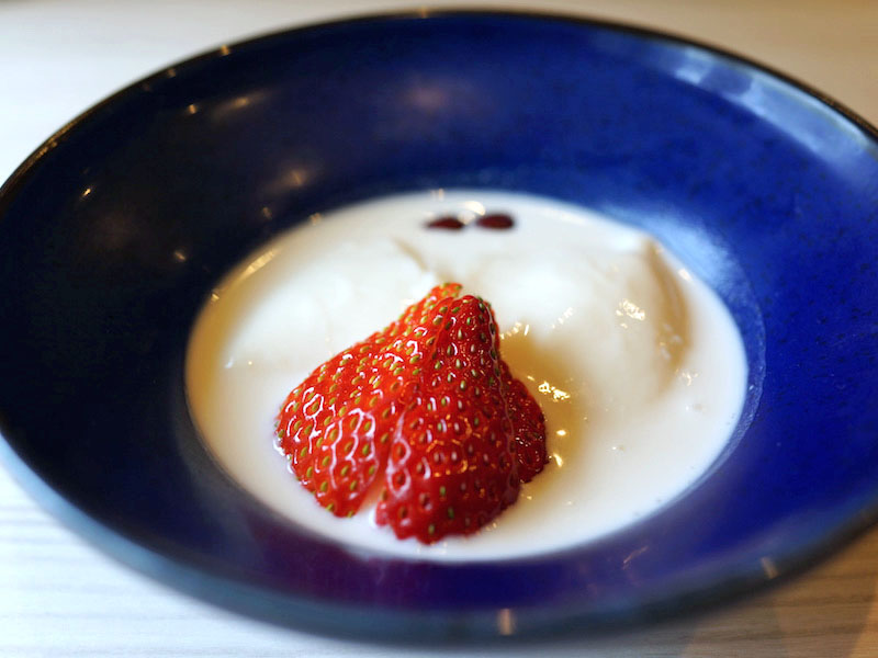 杏仁豆腐の上にあまおう。季節を食べてという心配りも相変わらずで、こんなお店が近所にあるって、なんてシアワセと感謝する。