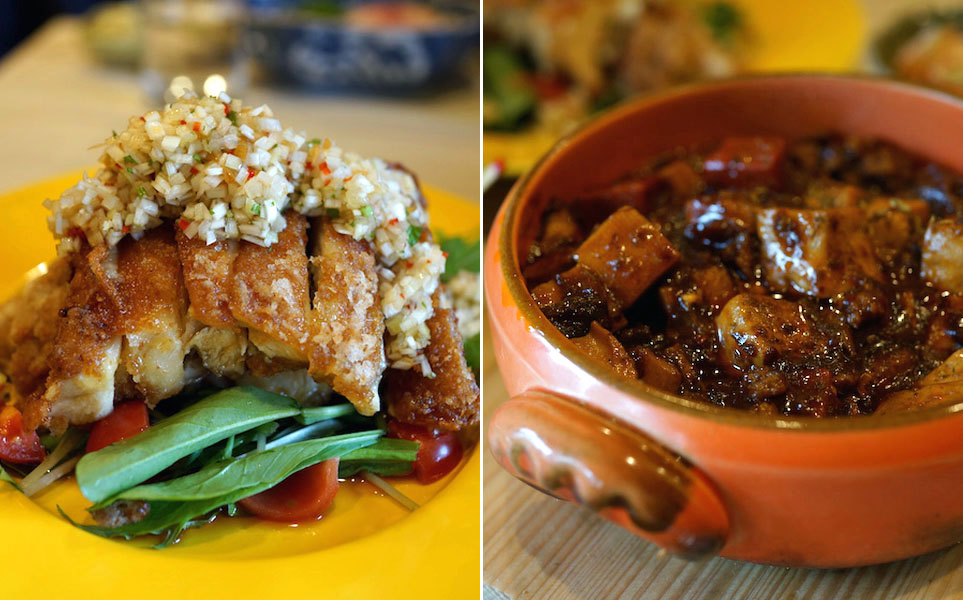 細かく刻んだネギやパプリカがまるでマリネを食べてるみたいなユウリンチー。牛バラ肉を煮込んで潰したモノをゴロゴロ入れた麻婆豆腐と、洋風料理のようなテイストすらある料理の数々。