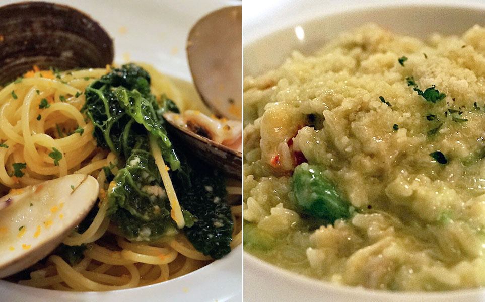 大きなはまぐりを大胆に使ったペペロンチーノ。おろしたカラスミをたっぷり混ぜて、海の香りが口いっぱいに広がっていく。