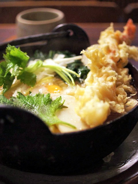 鉄鍋でグツグツしながらやってくる、ココのゴージャス鍋焼きうどん。