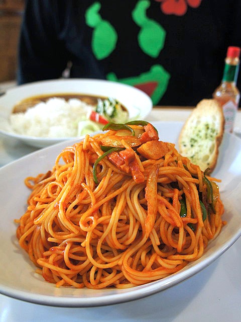 写真の中のナポリタンより、前に座ったお友達のトレーナーのイラストが気になってしまって仕方ありません。笑