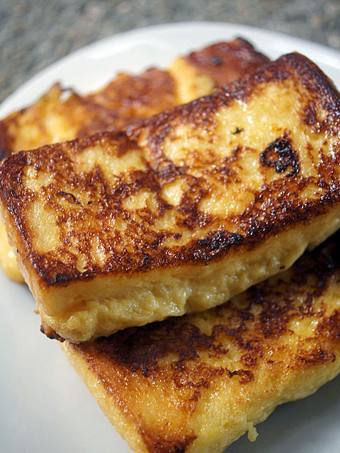 案外フックラ仕上がって玉子の風味と砂糖の焦げた香りがおいしく、見事においしいフレンチトーストになっていた。