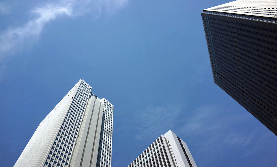 ひさしぶりの東京の空は眩しいほどに明るいブルー。