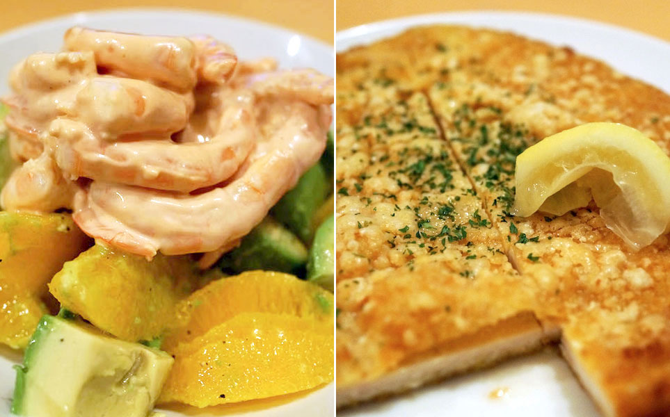 お皿に盛ったら、オーロラソースをまとわせた茹でたエビを上にキレイに並べてひと品。オレンジの甘みと酸味がドレッシングのような役目を果たしてくれて、オリーブオイルの香りもさわやか。ムッチリとしたエビとの相性も抜群で、おでんで疲れた口をたのしく休ませる。