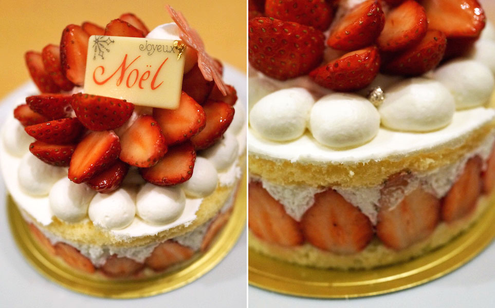 おしゃれに趣向を凝らしたケーキが沢山あるけど、やっぱり日本のクリスマスにはイチゴのショートケーキでござろう。