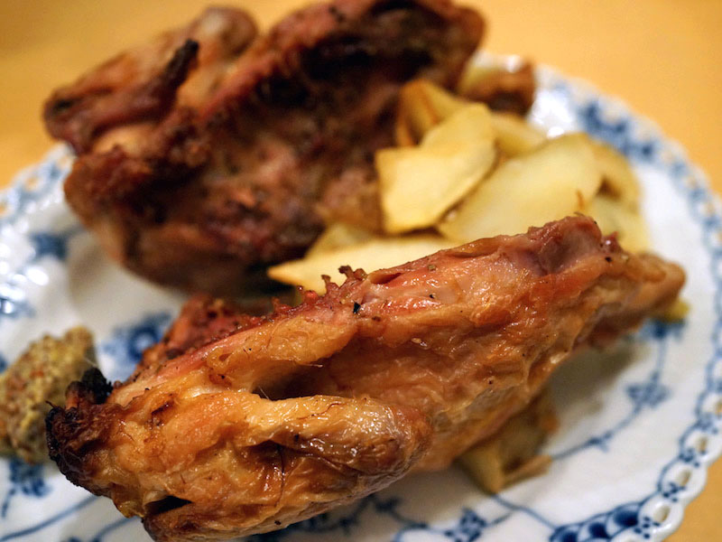 一緒にローストしたジャガイモのホックリとした甘みと一緒に手づかみしながらムチュンと食べる。お腹の中にメリークリスマス。