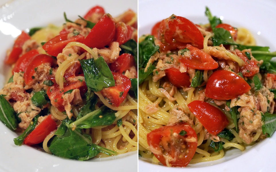 エクストラヴァージンオリーブオイルでマグロを漬けたツナ缶で、それを使って冷たいパスタを作ってやろうと…。