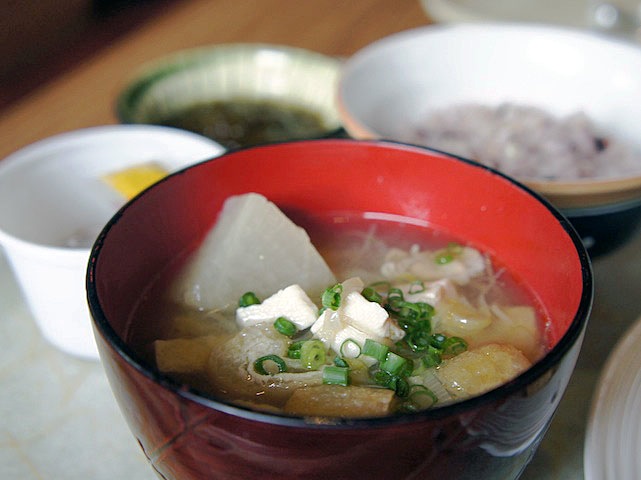 豚汁、銀むつの西京漬、里芋の煮ころがし、山椒の佃煮…。