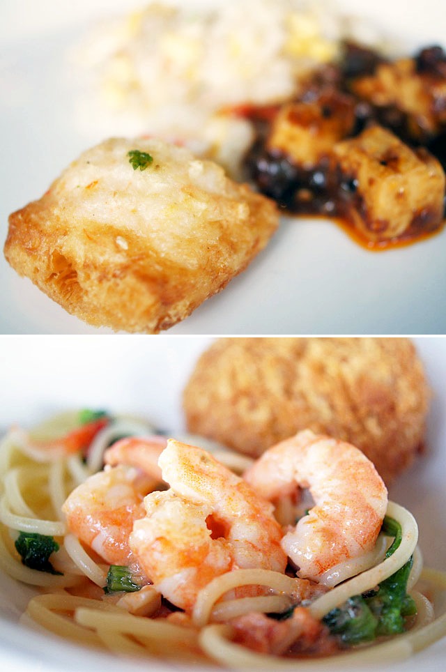 パスタのソースにエビとムール貝のトマトクリームがあったりもして、チャーハンだってかにチャーハン。