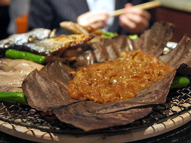 朴葉の上で味噌を焼いて食べるという、素朴でけれどおいしい料理。
