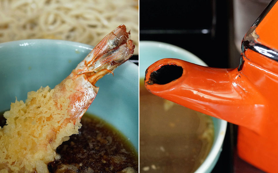 天ぷら衣の油の旨みがコクとなる、天ぷらせいろを食べたご褒美がこの〆のツユ。お腹も軽く、さて二駅ほどを歩きましょうと立ち上がる。