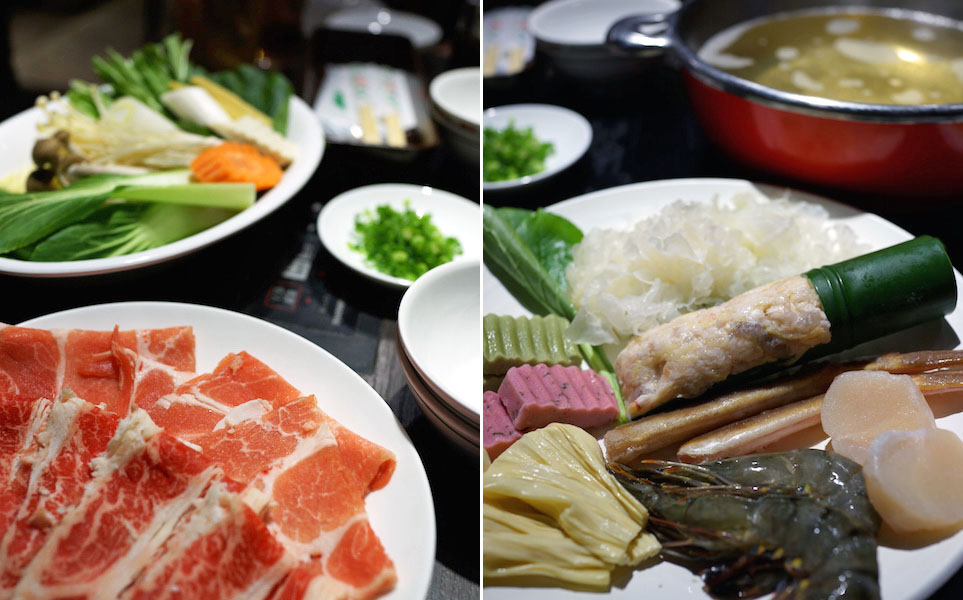 豚肉、牛肉、野菜さまざま。海鮮類をあれやこれやと、タッチパネルで好きなものを選んでそれをクツクツ煮込む。
