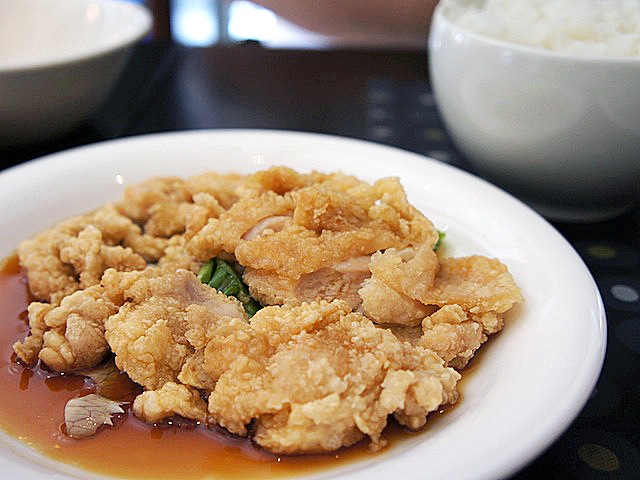普通、ユーリンチーは痩せた鶏の皮付き肉をバリッと揚げて作るモノ。
