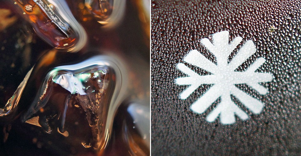 涼しくはある、けれどさすがに氷をたっぷり蓄えたカップの上には水滴ビッシリ…、雪の結晶の模様が濡れて本当に雪が降ってるみたいにみえてくる。