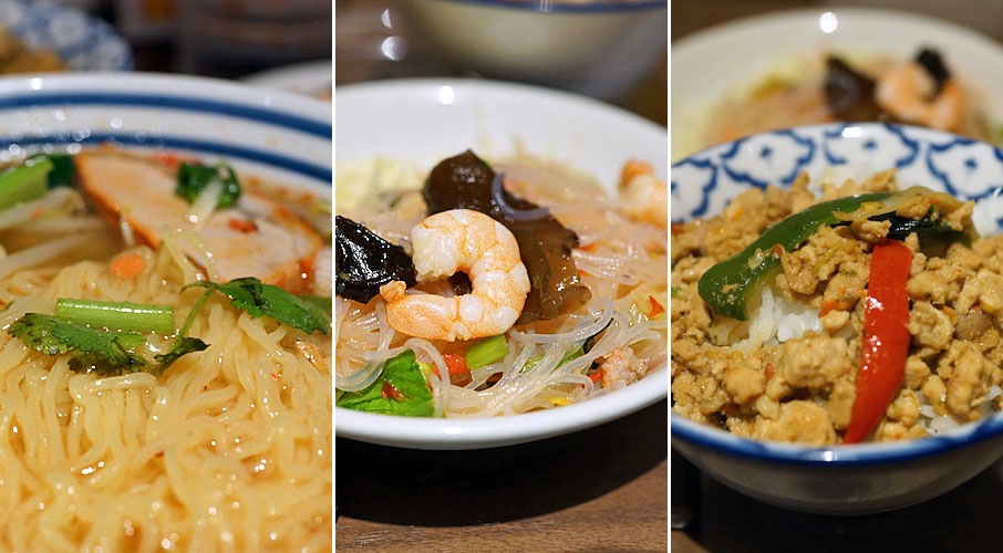 タイの醤油で仕上げられた豚ひき肉のそぼろやモヤシ、タイ風叉焼が麺の上を飾って食感たのしくさせる。