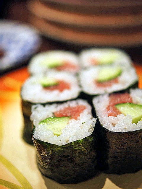 キュウリとマグロの色が見事にバランスとれてて、目にうつくしい。