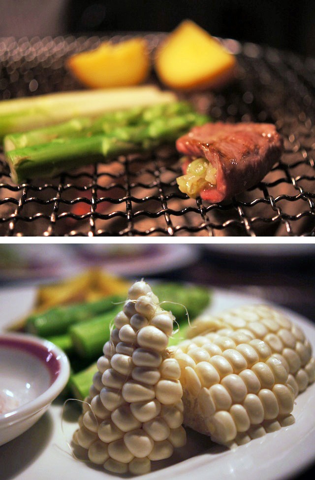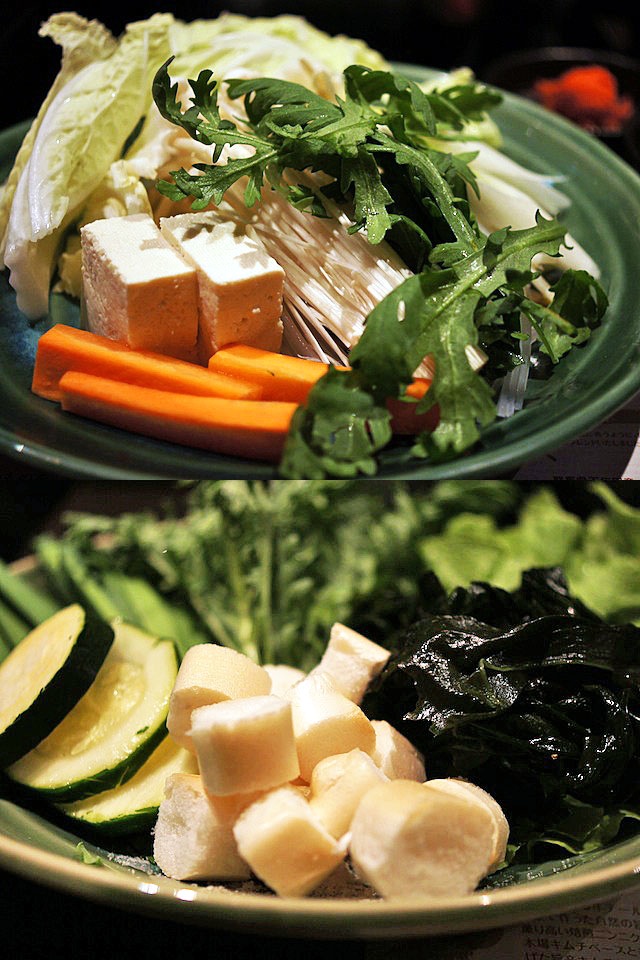 牛肉に豚、それに野菜が食べ放題で、テーブルの上には割り下に水、ポン酢にゴマだれと調味料がズラリと並ぶ。