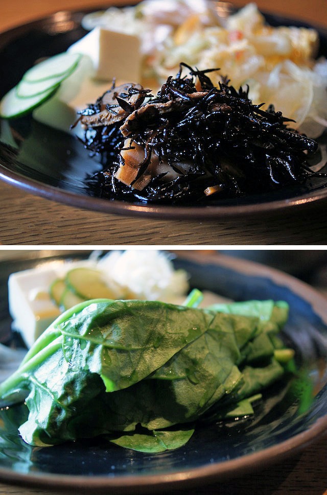 お腹の健康のためにワカメをしゃぶしゃぶとして、べか菜っていう埼玉の地野菜だっていう苦味がおいしい菜っ葉を食べて、ご飯にたよらずお腹をみたす。
