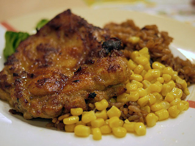 焼き肉用のたれを総動員して下味をつけ、醤油にソースで味ととのえる。