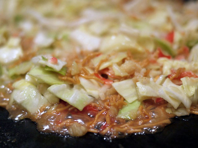 けれどキムチを入れたお好み焼きは試しに醤油で味付けをする。