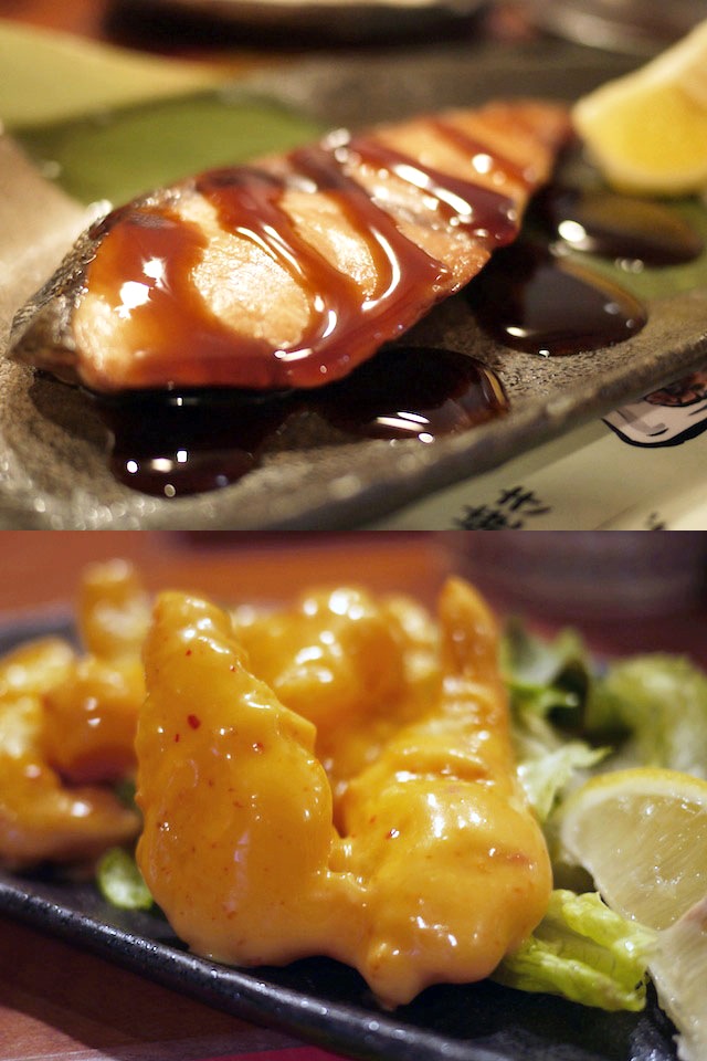 他にも鉄板焼きのレンコン、アボカド、長芋つまみ、サラダに焼き物、揚げ物つまむ。