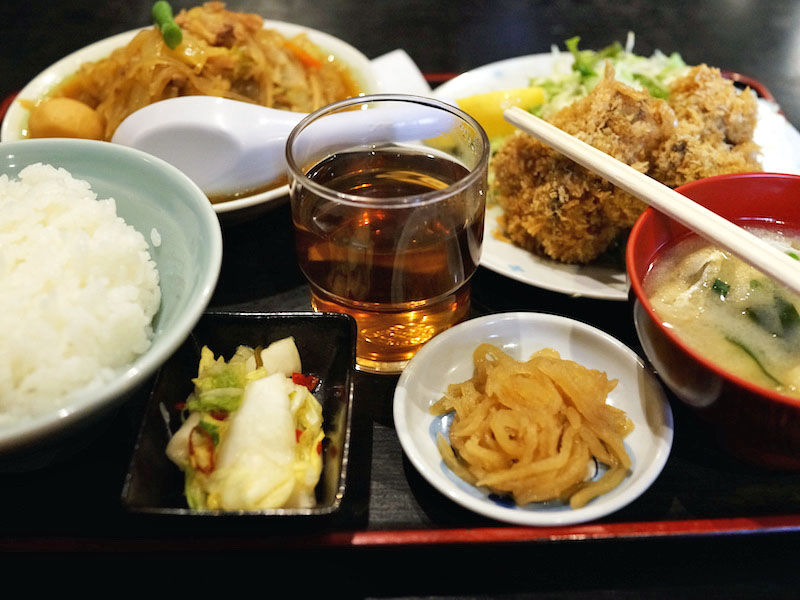 その組み合わせは全部で80種類ほどもあるでしょうか…、たのしく迷って結局メインのひとつはココの名物、牡蠣をフライを選んでたのむ。