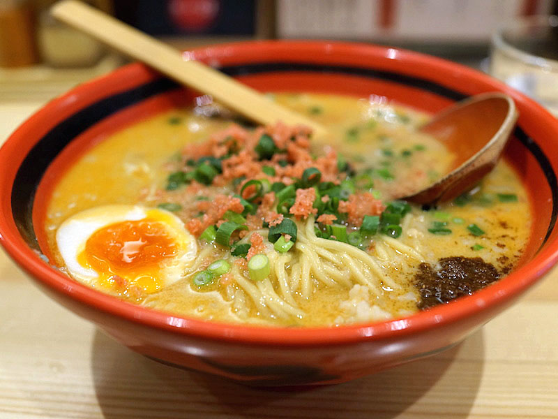 ラーメンの上には紅しょうがを練り込んだという赤い天かす。エビの頭を炒めて作った黒い味噌。玉子に叉焼、ネギがちらりとちらかっていて、スープをすすると口いっぱいにエビの旨味が広がっていく。
