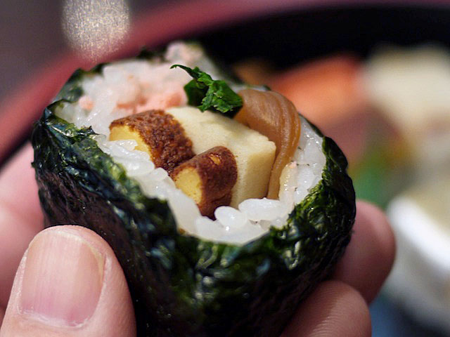 握りと違って、ネタや海苔とシャリが馴染んだ方がおいしくなるから。