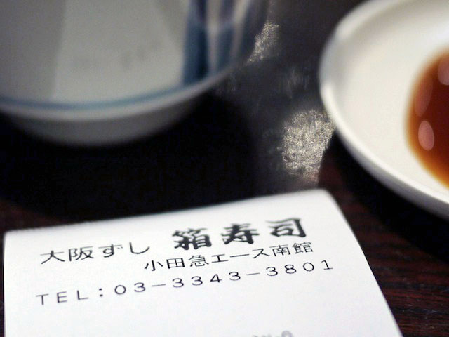 ここのお寿司は握りじゃなくて、関西風の巻き寿司あるいは押し寿司で、だから作り置いたモノがサラシの布で丁寧に包まれて棚に置かれているのですね。