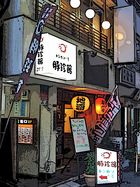 1階にはかつておいしいうどん屋があり、今では居酒屋。