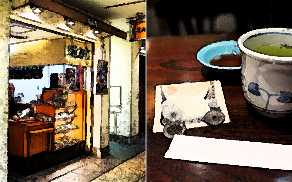 海苔巻きを食べるとバサッと口で壊れて、多彩な具材が口に散らかる…、厚焼き玉子に高野豆腐、甘辛に煮た刻んだしいたけ、かんぴょう、三つ葉。