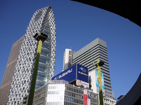 竹で編まれたみたいな不思議なビルに、昔からあるスバルビル。