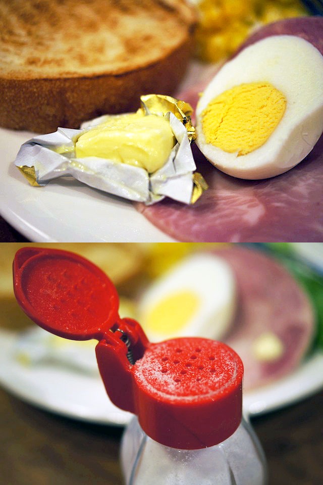 ホテルバターにマヨネーズという、最小限の組み合わせながら朝に必要なモノはすべてある。
