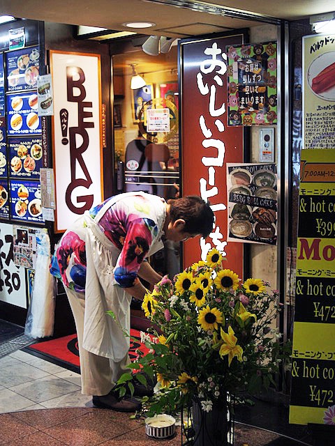 店頭に花活ける景色が目に眩しくて、ニコリとなります。