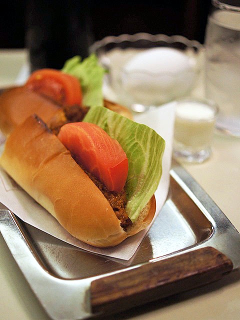 ドッグロールにはさまれているミートソースにコショウがたっぷり。