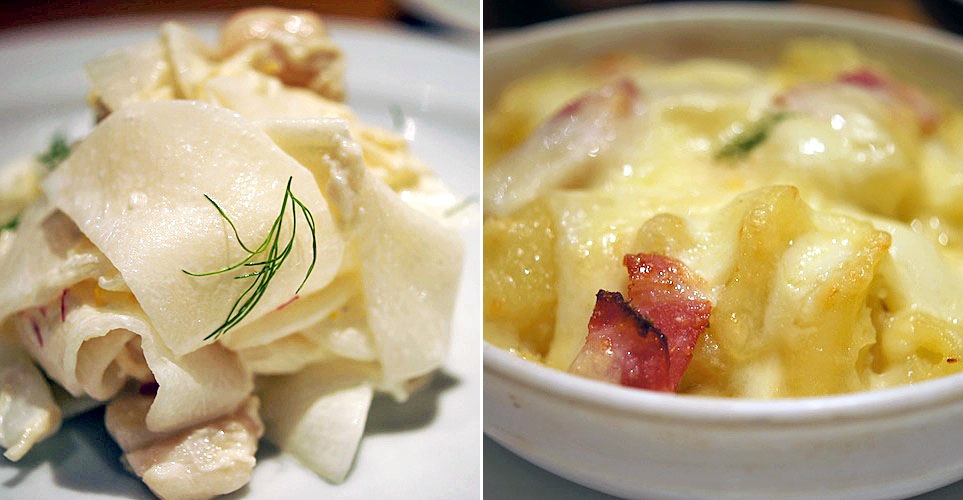 柚子の風味をそえて和風と洋風の中間みたいなやさしい味で、しんなりしながら、シャキシャキ歯ごたえある大根がとても軽快…、なつかしい。