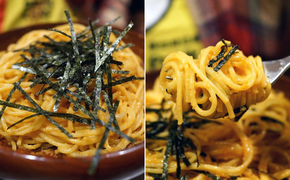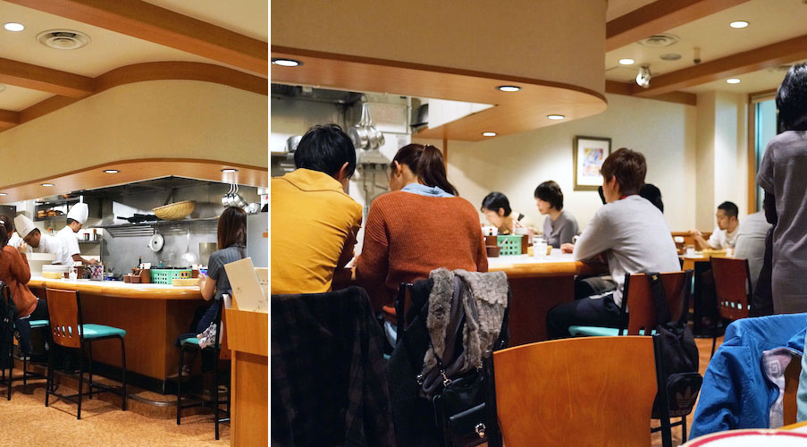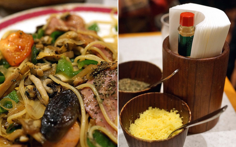 ここの名物は木のボウルの中で仕上げる和風スパゲティー。中でも「タラコウニイカ」が一番人気で、今日もタラコウニイカ・タラコウニイカと何度も何度も厨房に注文入る。その度、調理スタッフがタラコウニイカとその注文を繰り返すから、おいしい呪文のようになって、お腹をすかせる。