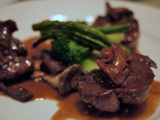 レアーに焼いてそこにキノコのソースをまとわす。
