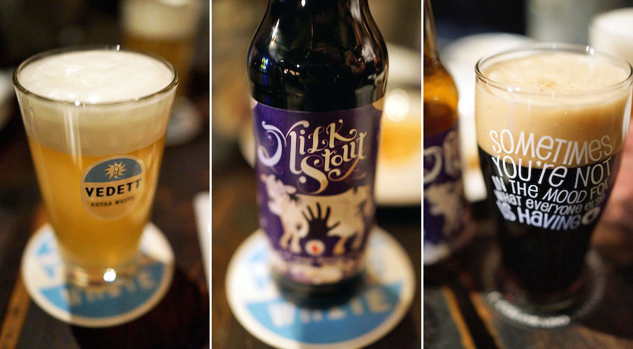 まずはベルギーの白ビール。花の香と明るい酸味をたのしんで、それからボクはボトルドビール。何にしようかと迷った挙句、結局ラベル買いをする。