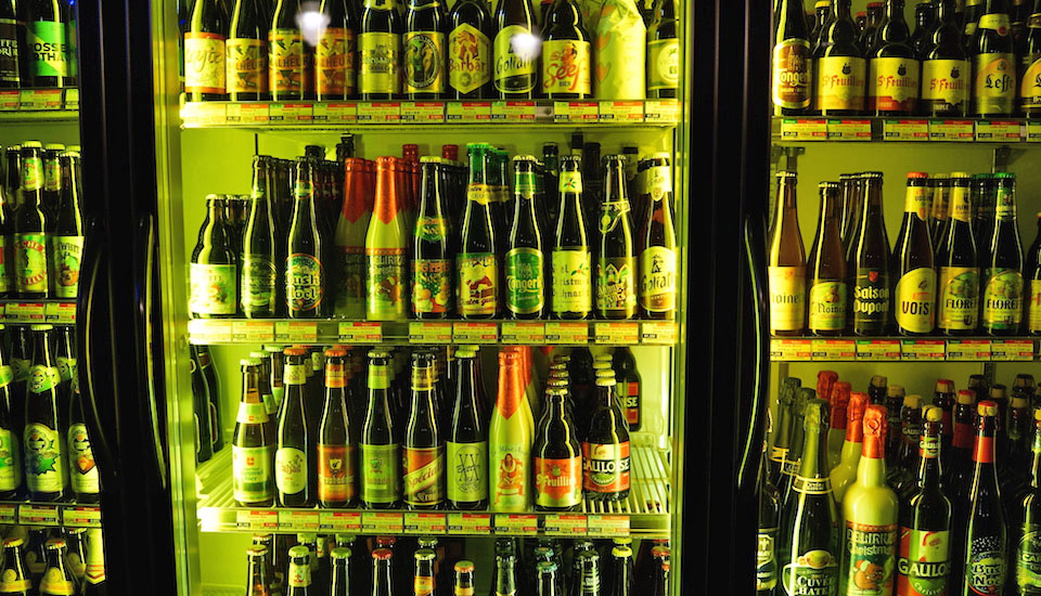 初めて行った時、冷蔵庫の中のさまざまなラベルのデザインに驚きました。日本のビールにはない感じにしびれました。