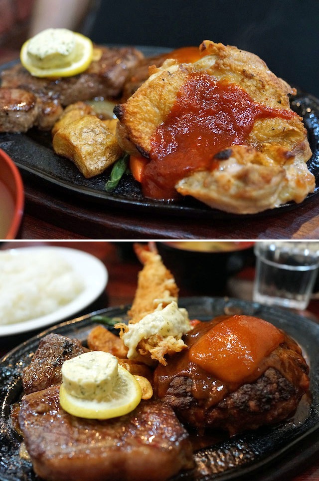 ひとつは「ステモリチキン」というステーキ、ハンバーグ、それからチキングリルの盛り合わせ。