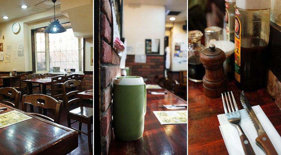 古くて小さく食堂風の店だけど、どこも磨きこまれてピカピカ…、椅子やテーブルの木なんてツヤツヤ光ってて、けれどどこにも油っぽさを感じさせない。