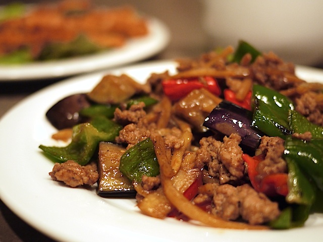 分厚いメニューのその半分以上が麺やご飯料理という、大飯店とひと味違ったメニュー構成に、あれも食べたい、これも食べたいって迷いに迷って、結局、ボクのオキニイリをいくつかたのむ。