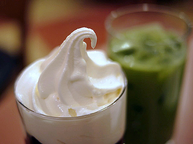 渕から今にもこぼれ落ちそうなさまにてテーブルの上に鎮座するのが、なんともたのしい。