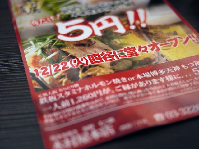 オープン記念のちらしのおかげでコストパフォーマンスもほどほどで、記念すべきもつ鍋デビューもつつがなく。