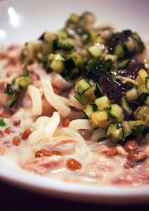 ダシがないときには、刻んだキュウリと大葉で十分代用できます。