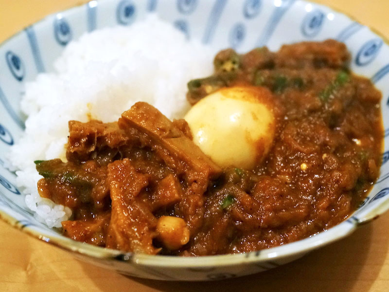 ホツホツとした豆の食感、クニュクニュトリッパ、玉子がムチュン。トマトの酸味とセロリの香りがカレーの辛味を引き立てる。固めにできた土鍋ご飯がまたおいしくて、夜のお腹があったまる。