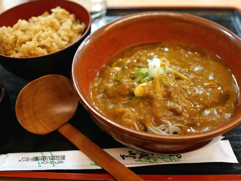 グルンとかき混ぜカレーのルーをまんべんなく蕎麦にまとわせズルンと食べる。蕎麦がむっちり。ちょっとイガイガした食感にカレーがからんで、これはこれで味わい深い。