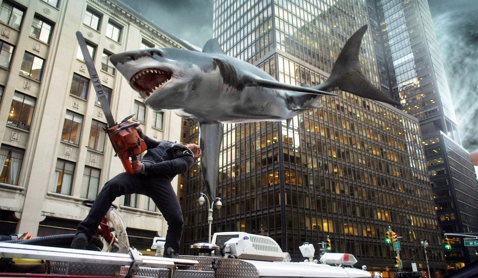 これもサメが巨大竜巻に飲み込まれ、空から降ってきながら人を襲うという内容。